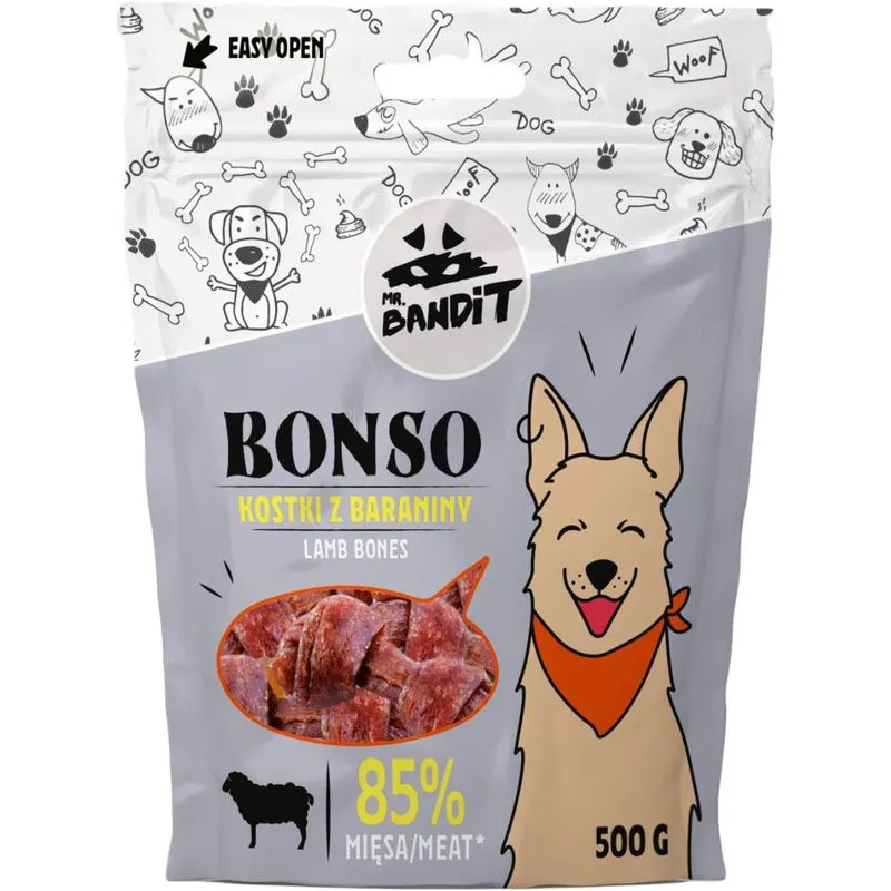 Recompense pentru caini Mr. Bandit Bonso Bones cu miel 500 gr
