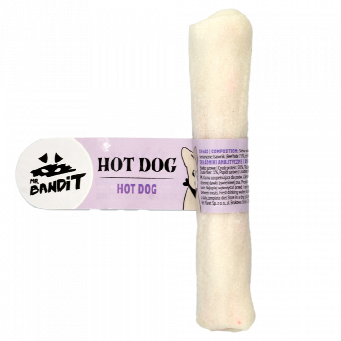 Recompense pentru câini Mr. Bandit Hot Dog - Piele de vită, 12 cm
