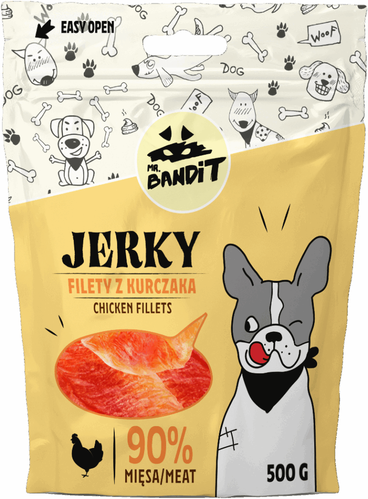 Recompense pentru câini Mr. Bandit JERKY, pui, 500g – Răsfățul perfect pentru patrupedul preferat