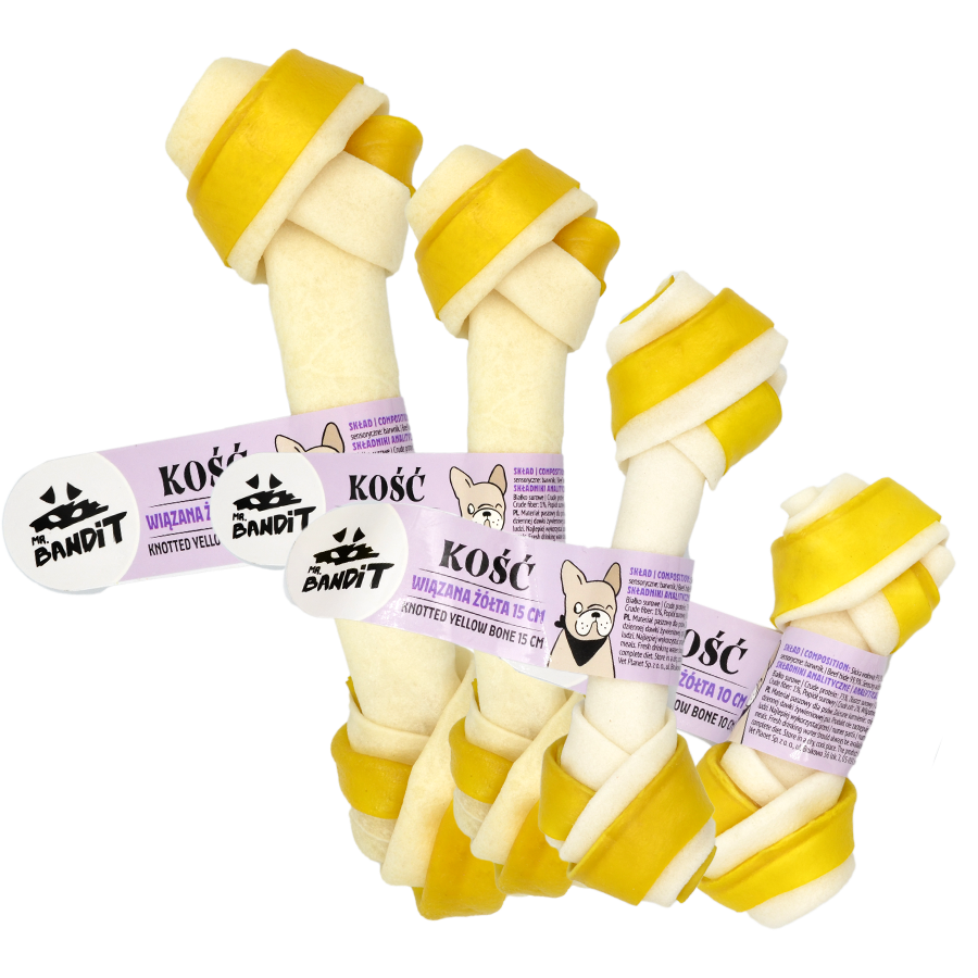 Recompense pentru câini Mr. Bandit Knotted Bone - Os innodat galben de 10 cm