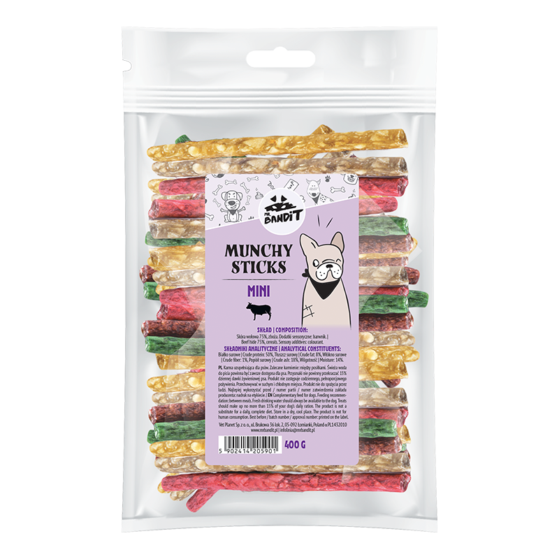 Recompense pentru caini Mr. Bandit Munchy Sticks MINI, 400g, 100 buc.