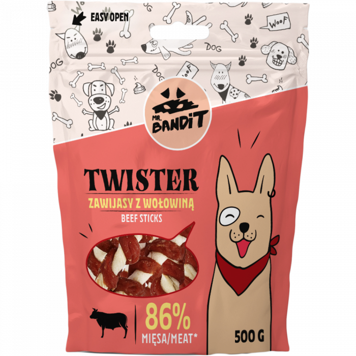 Recompense pentru câini Mr. Bandit TWISTER, vită, 500g - Deliciul perfect pentru blănosul tău