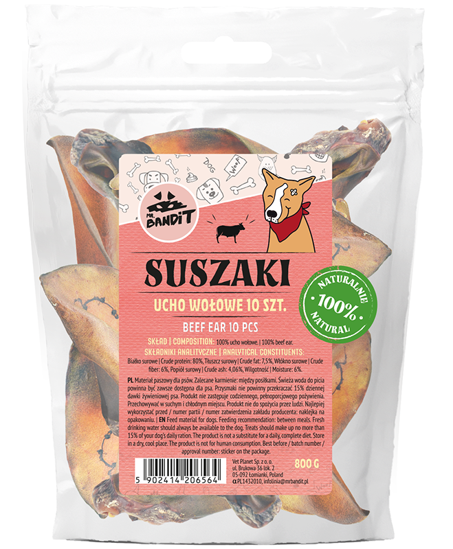 Recompense pentru câini Mr. Bandit - Urechi de vită (10 buc)