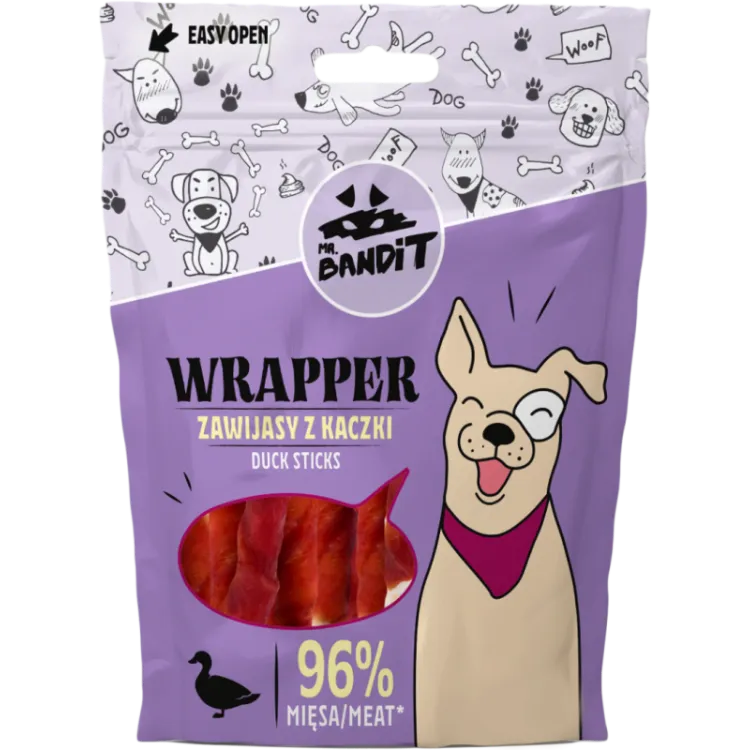 Recompense pentru caini Mr. Bandit Wrapper Sticks cu rata 80 gr