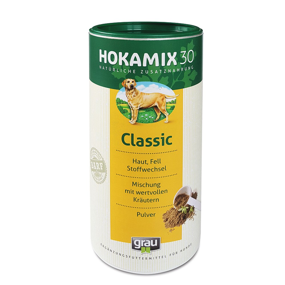 GRAU HOKAMIX 30 este un supliment alimentar natural pe bază de plante alese precum anason, urzici și rozmarin. Plantele conțin în mod natural minerale, oligoelemente, aminoacizi, vitamine și alte substanțe vegetale secundare. Acestea pot contribui la satisfacerea nevoilor câinelui tău. Pudra pur vegetală este ușor de dozat și este potrivită pentru toți câinii începând cu momentul când încep să mănânce hrană solidă. Datorită prelucrării atente, nutrienții și substanțele vitale din pudra GRAU HOKAMIX 30 sunt conservate în mod optim. Suplimentul alimentar practic nu conține gluten și, prin urmare, este deosebit de bine tolerat. Pudra poate susține patrupedul în timpul schimbărilor de blană și poate contribui la o digestie normală și la bunăstarea generală. GRAU HOKAMIX30 Pudră, descriere:Supliment alimentar pentru câiniPentru susținerea funcției naturale a pielii și a blănii și a metabolismului normalIerburi alese: amestec de 30 de plante valoroase, cum ar fi anason, urzică și rozmarinBogată în substanțe vitale: sursă de minerale naturale, aminoacizi, oligoelemente, vitamine alte substanțe vegetale secundareStrict pe bază de plante: amestec de 30 de plante valoroase, în special plante medicinalePreparată cu grijă: nutrienții importanți și substanțele vitale sunt păstrateFără aditivi și gluten: susține o bună tolerabilitateProdusă în GermaniaFormă practică de pudră: ușor de dozatNotă: pudra GRAU HOKAMIX 30 nu trebuie să vină în contact cu apă foarte fierbinte și nici să fie păstrată la temperaturi peste 35°C. A se păstra la loc uscat și răcoros.