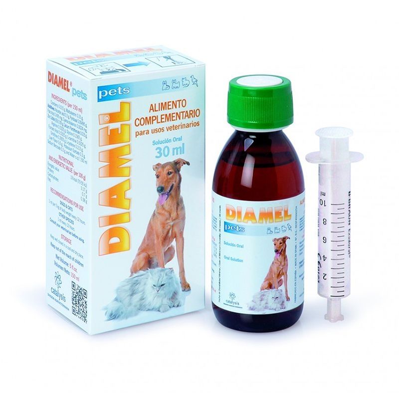 Diamel Pets este un supliment care regleaza tensiunea arteriala si stimuleaza metabolismul pancreatic al animalelor de companie.nDiamel Pets contine un amestec unic de aminoacizi, vitamine si oligoelemente care ajuta la normalizarea nivelului de glucoza, colesterol si acid uric.nIn plus, suplimentul contine antioxidanti pentru protectia celulara, si ajuta la normalizarea glicemiei.nTrei vitamine, acidul folic (vitamina B9), cianocobalamina (B12) si piridoxina (B6 vit) opresc formarea homocisteinei si ajuta la reducerea nivelului de colesterol.nSuplimentul contribuie la protectia impotriva bolilor cardiovasculare si degenerative, cum ar fi retinopatia diabetica.