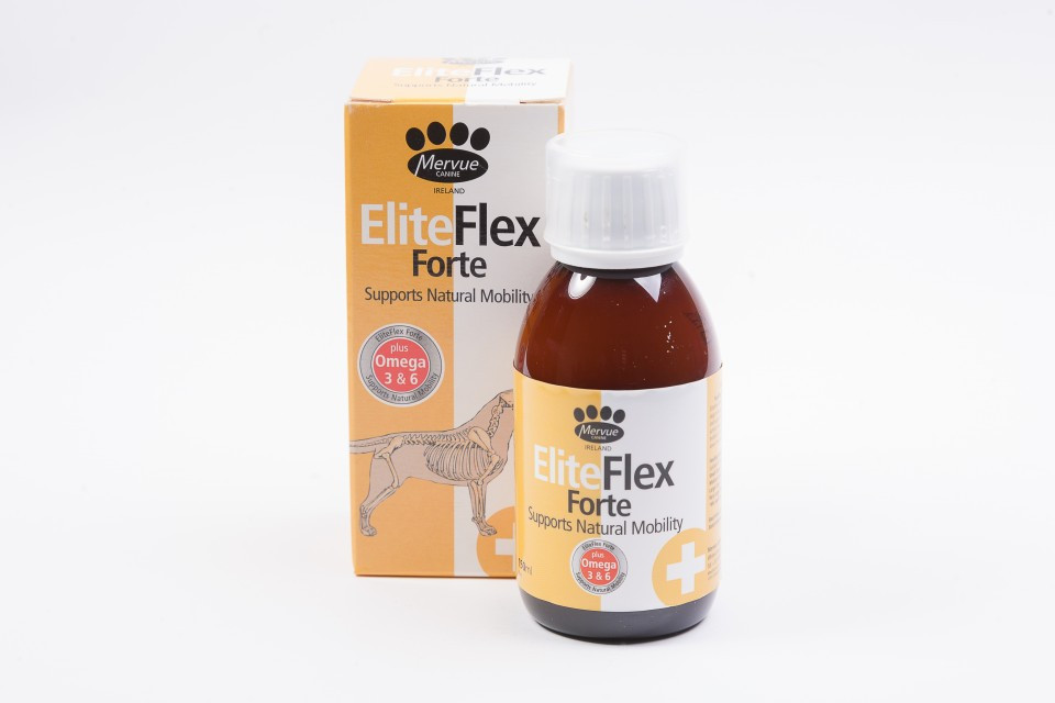 – Elite Flex Forte – Pentru o mobilitate naturala. – Formula cu tripla actiune pentru articulatii sanatoase, muschi si recuperare. – A fost creat special pentru caini cu scopul de a le proteja articulatiile si cartilajele si pentru o mai rapida recuperare dupa accidentari. – Perioadele cu activitate intensa sunt solicitante pentru mobilitatea cainilor. – Imbatranirea incetineste procesele naturale de refacere a cainilor in varsta. Compozitie per 5 ml: Ulei de ficat de cod, Glucozamina – 875 mg, Sulfat de condroitina – 250 mg, Rozmarin. Aditivi per 5ml: Vitamina E – 50 mg, Vitamina B1 – 0.25 mg, Zinc: 2.5 mg, MSM (metilslufinilmetan) – 575 mg, Omega 3 – 405 mg, Omega 6 – 18 mg, Acid hialuronic – 2500 mcg. Constituenti analitici: Proteina 2%, Uleiuri 20%, Fibre 0.2%, Umiditate 55.2%, Cenusa 1.8%,Sodiu 0%. Administrare: Se poate administra si cateilor dupa intarcare. Caini mici (30kg): 12 ml pe zi timp de 30 zile* Pentru cainii cu probleme digestive adiministrati zilnic la doua mese separate. Agitati bine inainte de utilizare. Nu lasati la indemana copiilor. Nu depasiti doza recomandata.Consultati specialistul dvs inainte de folosire.