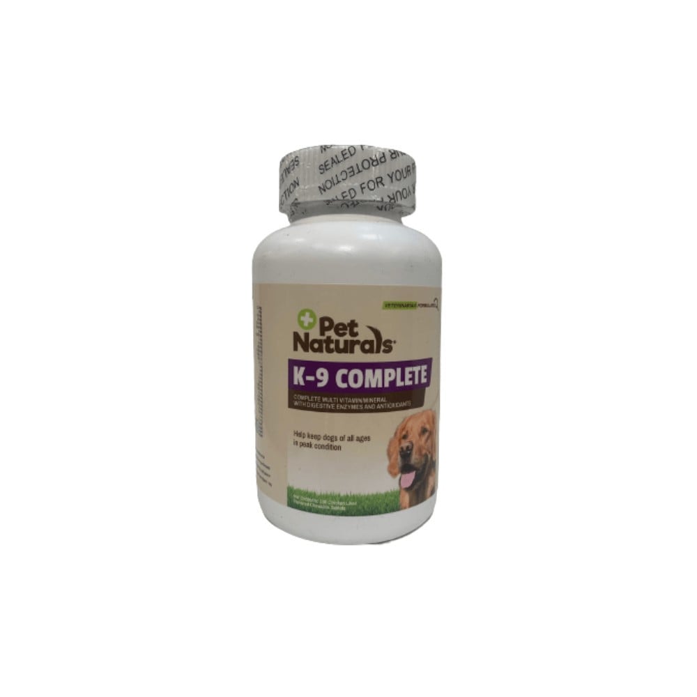 PET NATURALS K-9 COMPLETE – supliment nutritional cu o formula echilibrata de vitamine, minerale, aminoacizi, acizi grasi, enzime digestive, antioxidanti Ingrediente: Ficat de pasare hidrolizat, drojdie de bere uscata, fosftat de calciu, celuloza, oxid de magneziu, alge, acid stearic (vegetal), acid ascorbic, clorura de potasiu, proteinat de fier, niacina, proteinat de zinc, dioxid de siliciu, proteinat de magneziu, bromelina, pepsina, acid para-amino benzoic, vitamina E, lecitina din soia, betaina, clorura de colina, pantotenat de calciu, complex crom-metionina, inositol, vitamina B12, morcovi deshidratati, riboflavina, proteinat de cobalt, mononitrat de tiamina, vitamina A, vitamina D3, piper rosu, nucsoara, clorhidrat de piridoxina, pancreatina, biotina, proteinat de cupru, complex menadiona-bisulfit de sodiu (sursa de vitamina K), acid folic, selenit de sodiu. Compozitia garantata pentru 1 tableta: L-Metionina 2,5 mg Acid linoleic 2 mg Calciu 100 mg Fosfor 83 mg Magneziu 46,65 mg Potasiu 12,44 mg Mangan 1 mg Fier 3 mg Zinc 1,5 mg Iod 0,05 mg *Cobalt 30 mcg Cupru 2,5 mcg *Crom 2 mcg Seleniu 2 mcg Vitamina A 1000 U.I. Vitamina D3 100 U.I. *Vitamina C 50 mg Niacinamida 10 mg d-Acid Pantotenic 2 mg Vitamina B1 1 mg Vitamina E 2 U.I. *Acid para-amino benzoic 3,75 mg Riboflavina 1 mg Vitamina B6 0,2 mg Vitamina B12 2 mcg Acid Folic 2 mcg Biotina 2 mcg *Vitamina K 1 mcg Lecitina 2,5 mg Betaina HCI 2,5 mg Colina 2,5 mg *Inositol 2 mg Pepsina 6,75 USP Unitati1 Lipaza 3,75 USP Unitati4 Bromelina 1,35 GD Unitati2 Proteaze 20 HUT Unitati3 *Nu este recunoscut ca un nutrient esential de catre Profilul Nutritiv al Cainelui al AAFCO – SUA. 1O unitate USP de activitate proteazica elibereaza 3 mg de aminoacizi (din albumina de ou)/min/mg de enzima in conditii standard. 2O unitate HUT de activitate proteazica va elibera un hidrolizat (aminoacizi) al carui absorbanta la 275 mu este similara cu 6mM HCI solutie de tirozina cu o concentratie de 1,10 pg tirozina/ml. 3O unitate GD de activitate proteazica elibereaza aproximativ 8,4 mg aminoacizi (din gelatina)/20min/mg de enzima la 45oC si pH 4,5. 4O unitate USP de activitate lipazica va elibera 1 mmol acid gras din ulei de masline/min/mg de enzima la 37oC si pH 9. Mod de administrare si dozaj: 1 si ½ tableta zilnic pentru cainii cu greutatea sub 9 kg. 2 tablete zilnic pentru cainii cu greutatea cuprinsa intre 9 si 32 kg. 3 tablete zilnic pentru cainii in greutate de peste 32 kg. Daca administrati mai mult de 1 tableta se recomanda divizarea necesarului in 2 prize, dimineata si seara. Pastrare: la loc uscat si rece. A nu se lasa la indemana copiilor sau a animalelor. A se pastra flaconul bine inchis.