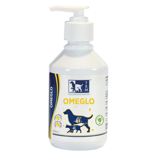 OMEGLO este un furaj complementar pentru câini și pisici, pentru susținerea funcției pielii în cazul dermatozelor și al căderii excesive a părului și pentru susținerea metabolismului articulațiilor în cazul osteoartritei. INSTRUCȚIUNI DE UTILIZARE CORECTĂ: Amestecați bine OMEGLO în hrana pentru animale. Hrăniți fiecare animal în mod individual. Hrăniți inițial timp de 2-3 luni. Câini de talie mică (până la 10 kg) și pisici: 4 ml pe zi Câini de talie medie (10-25 kg): 6 ml pe zi Câini de talie mare (25-40 kg): 8 ml pe zi Câini foarte mari (peste 40 kg): 12 ml pe zi În fiecare ambalaj este inclusă o pompă de dozare. Pompa eliberează 2 ml la fiecare apăsare. Pentru animalele de talie mai mare este inclus și un pahar gradat de măsurare. Se recomandă să se ceară sfatul unui medic veterinar înainte de utilizare și înainte de a prelungi perioada de utilizare. Compoziție: Ulei de semințe de in presat la rece, ulei de alge marine, ulei concentrat de tărâțe de orez (Gamma Oryzanol). Aditivi per 12ml. 3a672b Vitamina A 11.155 UI 3a671 Vitamina D3 1.116 UI Vitamina E 1 UI Constituenți analitici: Proteine brute <1%, grăsimi brute 100%, cenușă brută <1%, fibre brute <1%, acid linolenic 42,5%, acid linoleic 13,3%, acid eicosapentaenoic 1,7%, acid docosahexaenoic 5,4%, total EPA și DHA 7,1%, raportul Omega-3/Omega-6 3,7. A nu se păstra la îndemâna copiilor A se păstra într-un loc răcoros și ferit de lumina directă a soarelui.