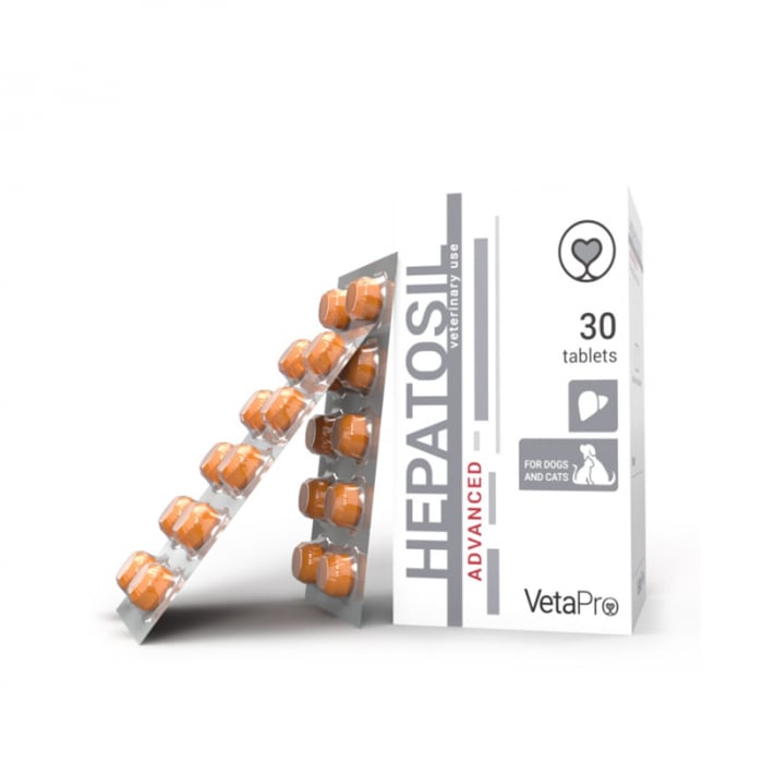 Supliment hepatic pentru caini pisici Vetapro Hepatosil Advanced 30 tab cutie