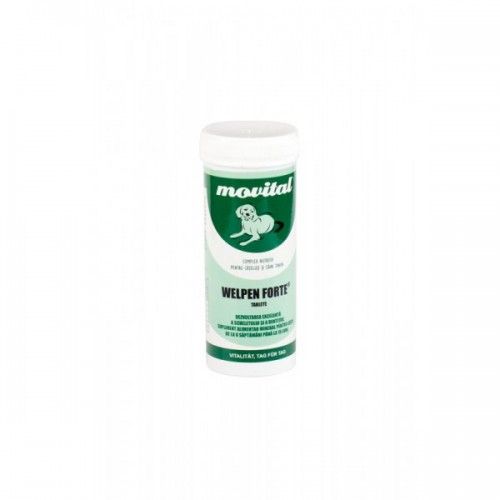 Complex nutritiv pentru catei tineri.nProprietati:Aceste tablete sunt obtinute intr-o formula echilibrata de macro- si microelemente (Ca, P, Na, Fe, Zn, Mn, Cu, Co, I, Se) si sunt destinate special sa satisfaca cerintele date de cresterea si dezvoltarea organismului. Sunt usor digerabile si pot fi administrate zilnic, chiar din prima zi de hrana (aprox. de la varsta de 6 saptamani) si pana la sfarsitul perioadei de crestere.Atunci cand tabletele de Welpen Forte® sunt administrate in mod regulat si in concordanta cu recomandarile de hrana, dezvoltarea unui schelet sanatos si a unei dentitii puternice se desfasoara in mod optim.Pentru caini adulti se recomanda utilizarea produsului Maxvital tablete®.nIndicatii:Dezvoltarea excelenta a scheletului si a dentitiei.Supliment alimentar mineral pentru catei de la 6 saptamani pana la 15 luni.